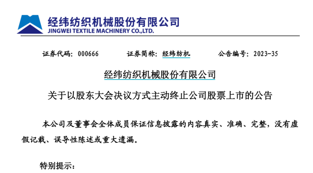 ![]() 兄弟姐妹们啊,又见证历史了,A股上市公司经纬纺机8月29日深夜突然发公告,宣布退市。 经纬纺机宣布退市 ![]() 第一、经纬纺机在财务上没有触发任何退市条件,自己主动申请退市。这在A股应该算是首例,此前A股也有主动退市的,是叫*ST二重,但是这家公司因2011年至2013年连续三年亏损,2014年度继续亏损78亿元,退市已经不可避免。 第二、经纬纺机是一家央企下属公司。是中国恒天旗下子公司,中国恒天成立于1998年,是国内以纺织装备为核心主业的中央企业。2017年6月29日,经报国务院批准,中国恒天集团有限公司整体并入中国机械工业集团公司。 第三、它还是中融信托的大股东。 先看看公告怎么说。 ![]() 为保护中小股东利益,根据《深圳证券交易所股票上市规则》等相关法律、法规及规范性文件的规定,经公司股东中国恒天集团有限公司(以下简称“恒天集团”)、中国恒天控股有限公司(以下简称“恒天控股”)提议,并经公司董事会审议通过,公司拟以股东大会决议方式主动撤回A股股票在深圳证券交易所的上市交易,并转而申请在全国中小企业股份转让系统转让。 2023年8月26日,国机集团出具《关于同意实施经纬纺机主动退市的批复》,同意经纬纺机以股东大会决议方式实施主动退市,同意恒天集团提供现金选择权。 2023年8月27日,经恒天集团第三届董事会第三十八次会议审议,同意提议经纬纺机以股东大会决议方式实施主动退市,同意由恒天集团提供现金选择权。 2023年8月27日,经恒天控股股东会审议,同意提议经纬纺机以股东大会决议方式实施主动退市。 ![]() 行使现金选择权的经纬纺机股东可就其有效申报的每一股经纬纺机股份,在现金选择权实施日获得由相关现金选择权提供方按现金选择权价格支付的现金对价,同时将相对应的股份过户至相关现金选择权提供方名下。该等行使现金选择权的股东无权再就申报行使现金选择权的股份向经纬纺机或任何同意本次以股东大会决议方式主动终止上市方案的经纬纺机其他股东主张现金选择权。 现金选择权的行权价格为9.24元/股,为公司本次董事会决议审议通过以股东大会决议方式主动终止上市事项前三十个交易日的每日加权平均价格的算术平均值。 扣除恒天集团、中纺机集团持有的公司2.38亿股股份,及其他股东持有的为限售或存在权利限制的公司21.5万股股份,以及退市外资股1.81亿股份。在现金选择权申报时间内,恒天集团预计将为不超过2.85亿股股份提供现金选择权,具体以现金选择权实施情况为准。 公告也提示了行使现金选择权的相关风险。 若股东大会不能通过《关于以股东大会决议方式主动终止公司股票上市事项的议案》,公司的A股异议股东及其他A股股东将不能获得现金选择权,公司的A股异议股东及其他A股股东不得就此向公司或恒天集团主张任何赔偿或补偿。 若申报行使现金选择权时公司股价高于现金选择权价格,则股东申报行使现金选择权将可能使其利益受损。 其实就在8月28日,经纬纺机突发公告,公司于8月27日收到公司股东恒天集团《关于筹划重大事项申请股票停牌的函》,恒天集团正在筹划与公司相关的重大事项。最新数据显示公司的股价是8.05元一股,而行权价格为9.24元/股。 系中融信托第一大股东 经纬纺机还有一个更重要的角色,就是中融信托的第一大股东!我们知道,中融信托最近不太平。 中融信托前身为成立于1987年的哈尔滨国际信托投资公司。2002年,中植集团出资1.2亿元参与了中融信托的重组,一举成为第一大股东。 2010年,经纬纺机受让中植企业集团持有的中融信托11700万公司股本,成为第一大股东。经纬纺机持有中融信托37.470%股权,为控股股东。中植企业集团持股32.986%,为第二大股东。于是,中融信托获得了国资背景,在国资身份的“加持”下,中融信托狂飙突进。不过,尽管中融信托明面上第一大股东是国资,但也有市场人士认为,经纬纺机扮演财务投资者的角色,中融信托仍由中植集团实际控制和操盘。 经纬纺机的年报显示,2022年年末,中融信托存续信托计划1633个,受托管理资产6293亿元。 ![]() 而目前已经有多家上市公司踩雷中融信托, 8月23日,先锋电子公告称,公司4000万元购买的中融信托产品“鸿榕1号”,本金及投资收益尚未收回,存在本息不能全部兑付或者仅部分兑付的风险。 8月21日晚间,先锋电子公告称,2022年8月15日至17日,公司分别使用闲置资金3000万元、2000万元购买了中融信托的裕嘉1号和汇聚金1号信托产品。截至公告披露日,上述信托产品本金及投资收益尚未收回,存在本息不能全部兑付或者仅部分兑付的风险。 8月21日,微光股份公告称,2023年5月22日,公司购买了中融信托发行的信托产品中融-汇聚金1号,金额为5000万元,到期日为2023年8月21日。截至本公告披露日,公司尚未收到该信托产品本金及投资收益。 8月18日,金房能源发布公告,2023年5月19日,公司购买了中融信托发行的“圆融1号”产品,金额为3000万元,起息日为2023年5月19日,到期日为2023年8月17日,预计年化收益率5.6%。截至本公告披露日,公司尚未收到本金及投资收益。 8月11日,金博股份、南都物业双双公告所购中融信托产品逾期兑付。其中南都物业于2023年2月9日,使用闲置自有资金3000万元购买了汇聚金1号,产品期限自2023年2月9日至2023年8月8日。金博股份于今年8月份,使用闲置自有资金6000万元购买了“隆