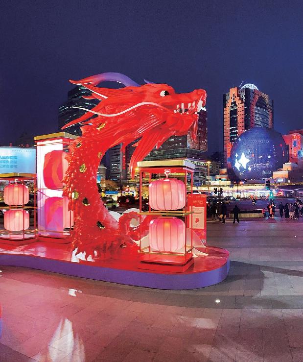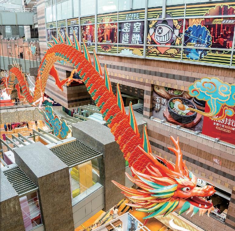 正大广场推出以“龙”为主题元素的艺术装饰,营造浓浓新春氛围。 (受访者供图) 制图:李洁