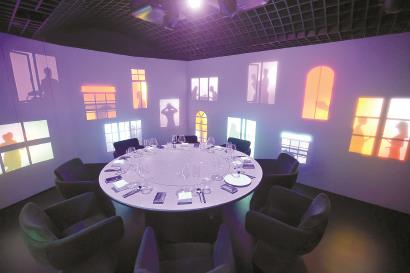 日前,大光明电影院“夜半MIDNITE”光影艺术餐厅公共区域对外营业。从“边吃边看”到“边吃边拍”,百年大光明焕新升级见证上海影院创新转型探索多元业态。记者 赖鑫琳 摄