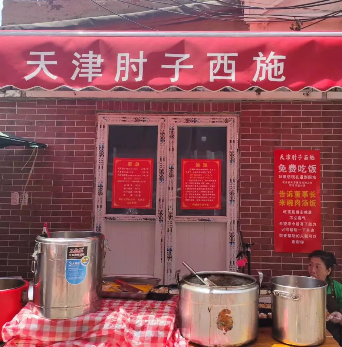 ![]() “如果您在天津没有收入,遇到困难,可以来本店,告诉本店人员来份爱心餐,吃完直接走就好,不必客气!在以后您有了能力的日子里,记得帮助一下身边需要帮助的人,谢谢!” 之后一年,李一帆又陆续找到7家愿意无偿请无收入者吃饭的天津小店,他整理了店名和地址发布在社交网络上,希望困窘的人可以按图索骥,吃上一顿饱饭。李一帆说,作为美食博主,他前几年没见过有餐厅主动不收钱的,“疫情之后就多了起来”。 事实上,“对无收入者免单”现象正在全国蔓延。凤凰网发现,包括但不限于北京、上海、广州、天津、成都、重庆、郑州、杭州、银川、菏泽、赤壁等一二三线城市都有出现,一个城市出现一两家后,很快会有餐厅效仿加入,其中有连锁餐饮,但更多是个体小店。 2024年11月,凤凰网走访了北京、天津、成都总共10家为困顿者提供免费餐食的餐馆。一些店主告诉凤凰网,自己是看到别家这么做继而模仿的,比如北京“小湘旺”湘菜馆宋庄分店的店长兰兰。半年前她到北京大兴区培训,在一家卖包子油条的早点铺看到了这样的海报。她用手机拍下,找了一家广告公司打印,第二天贴了出来。之后,公司的几家分店也跟着贴了出来。 还有店主是在社交媒体上刷到,跟着加入的,比如天津津南区“聚鑫缘”烧烤摊的老板宋浩。2023年4月的一天,宋浩刷到一家烤鱼店老板的视频,后者站在贴出的免费吃饭海报前对网友说,如果你很困难,可以来找我,说“来一份江湖套餐”,我可以帮助你。宋浩把海报截图保存,也找了一家广告公司打印,在原有内容上还加了一句话。 那句话是:希望你以后坚定信念,努力生活。 ![]() 为保护处境困难者的自尊心,很多提供免费餐的小店设置了“暗号”——来寻求帮助的人,不必讲述前因后果,只要报上暗号,就能获得一份免费餐。 在天津南开区古文化街的“蒙式牛肉面”面馆,暗号是“1号牛肉面”,它对应的是一份牛肉面,用店里最大的碗装的,以及加倍的牛肉和一个鸡蛋、一瓶饮料。 在天津和平区的盒饭小店“肘子西施”,暗号是“告诉董事长,来碗肉汤饭”,它对应的是一份22元的肘子饭。 在天津烧烤店“聚鑫缘”,宋浩沿用了烤鱼店老板的暗号“江湖套餐”,“同为江湖沦落人嘛”。它对应着10根烤肉串、两个大饼、一碗方便面,分量足够一个成年男性吃饱。 在成都东北部一家不愿具名的、做大众小炒的餐馆,暗号是“单人套餐”,它对应的是一份售价20多元的炒回锅肉或青椒肉丝,以及米饭。 在北京“小湘旺”宋庄分店,暗号是“39元辣椒炒肉盖饭”,它对应的是一份现炒的肉菜和米饭。 “如果不够,可以再加,”所有提供免费餐的店主都表示,“以吃饱为准。” 凤凰网接触的店主们常提到,希望有困难的人来了能无负担地吃饱饭,不被差异化对待。有的店主会专门培训服务员,比如成都“正反面”面馆的老板张平定下四个“不要”:不要盯着求助者看;不要指指点点;不要问人家为什么吃不上饭;说话声音不要太大(“不要刺激到了”);“把他当普通客人正常服务就好”,唯一的区别是,要过去问一下“用不用再添点什么”。 张平家的面馆从2022年八九月开始提供免费套餐,标配是一碗小面、一杯豆浆。店里没贴免费吃饭海报,但每张桌子的玻璃下压着一张“0元爱心餐”宣传纸。 “青三椒三碗面”店主黄明和“正反面”店主张平分别向凤凰网讲述了自己如何被美国“墙上咖啡”故事打动和启发——两人在2023年刷到了同一个视频,讲的是美国有一家咖啡小店,有钱人进店会点两杯咖啡但只喝一杯,多的一杯是捐赠的,服务员会把对应的“咖啡一杯”标签贴到墙上,有喝不起咖啡的穷人进店就可以取下标签,换取一杯咖啡。 有人说这个故事是杜撰的,但当时,黄明和张平都选择相信,并立竿见影地效仿起来。 现在,顾客在张平的店里捐出1元,或者在黄明的店里捐出任意金额,都可以领到一个爱心贴,贴在墙上。困难者进店后,只需要揭下一个爱心贴,就可以去换一碗面——连暗号都不用说。 在黄明店里,有顾客在爱心贴上写下给使用者的鼓励:“吃饱饭,不想家。” “早日度过难关!” “困难有时,希望有时。” 会好起来的,加油。” 很多提供免费餐的小店,也同时给环卫工人、快递员、外卖骑手提供价格优惠的爱心餐和免费水。 在北京朝阳区的豫石记羊汤店管庄分店,爱心套餐有两款:标价23元的精品全羊套餐和标价16元的河南烩面套餐。店员陈玉娟告诉凤凰网,作为爱心餐两款都只售12元,“我们对骑手都是不赚钱的”。陈玉娟说,店里一天能卖出四五十份爱心餐,骑手们多数下午一点半后来,一个骑手可能会吃8两,甚至1斤面。 张平面馆的爱心餐配置是一份小面、一个鸡蛋、一碗豆浆,售价8元。如果不够吃,面也可以免费加,“让他吃饱”。 张平店里的服务员多数是50多岁的女性,他跟她们说,你老公在外面打工,可能就是个骑手,他们送餐有时有电梯,有时没有,如果爬七八楼,他会特别累,多吃点是正常的。 “去年和今年多起来了。以前那种来吃免费面的,可能吃一顿就走了,过路客居多。去年和今年的,(有的)长期他就找不到工作。”黄明说。 2024年8月,他在手机上刷到一条推文,说一个西安女大学生饿死在自己的出租屋里。尽管事件后续扑朔迷离,但读到的当时黄明很难过。他想,要是这个女孩住在自己店附近,可以过来吃饭,就不至于饿死了。 他