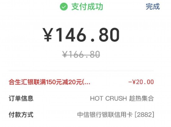 春节假期之前的最后一个休息日,合生汇商场来了不少置办年货的市民。徐女士在热门面包店“趁热集合”选中不少爆款产品,支付时发现原价166.8元直接满减20元。在VQ鲜榨果汁店买上一杯25元饮料,也能享受随机满减优惠。 ![]() ![]() 这些优惠,其实都来自银行投放的消费券。记者在商场看到,不少店铺门口摆放了“数字时空一券通”活动标识。据了解,优惠活动是中国银联和交通银行合作,消费者使用交通银行APP、买单吧APP、云闪付APP或手机闪付进行支付,就能享受满减优惠。 比如,使用云闪付APP在正餐类商户消费满150元可减20元,零售类商户满200元可减20元,其他类商户满10元随机减1元至3元。 那和传统的消费券投放有什么区别?简单来说,银行投入一笔营销资金,为该银行用户提供消费券等福利,过去是需要用户登录APP领取消费券,再拿着消费券去购物。有了“数字时空一券通”之后,用户无需领券抢券,在门店付款的同时,就能享受到消费券。 ![]() 摄影/日升 ![]() 摄影/日升