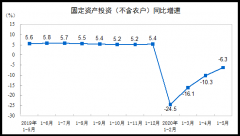2020年15月全国固定资产投资下降6.3% 降幅持续收窄 15月份,全国固定资产投资(不含农户)199194亿元,同比下降6.3%,降幅比14月份收窄4.0个百分点。其中,民间固定资产投资112232亿元,下降9.6%,降幅收窄3.7个百分点。从环比速度看,5月份固定资产投资(不...