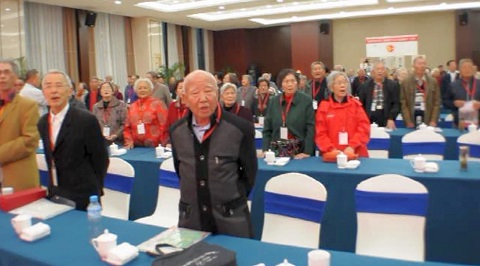 (老辰光网10月18日讯) “不忘初心话人生 上海首批下乡知青赴皖南农村插队60周年纪念大会” 2017年10月14日下午在安徽省旌德县海螺国际大酒店海螺厅召开。上海市知青历史文化研究会会长阮显忠、旌德县上海首批知青联谊会会长唐志刚、原上海知青慰问团领导金志堃、旌德县县长刘明辉、旌德县人大主任楼书丹、旌德县政协主席江理,大会纪念杯资助单位上海颐若文化传播有限公司代表范爱珍,原解放日报记者胡志刚,以及皖南各县上海首批下乡知青代表等一百八十余人出席了会议。