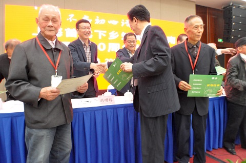 上海市知青历史文化研究会向旌德县上海老知青们赠送了刻有“知青先驱”字样的纪念杯。会议结束时全场高唱“共青团之歌”。