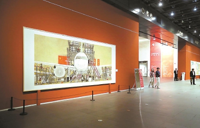 中华艺术宫0米层全国优秀美术作品展准备就绪。 均 本报记者 蒋迪雯 摄
