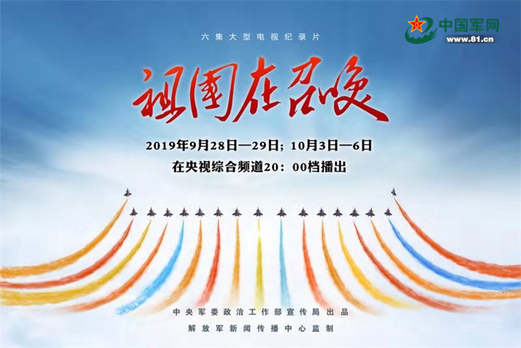 大型电视纪录片《祖国在召唤》即将播出![]() 为热烈庆祝中华人民共和国成立70周年,经中央军委批准,中央军委政治工作部组织拍摄了6集大型电视纪录片《祖国在召唤》。该片从9月28日起在中央电视台综合频道晚8点播出,每天1集,国防军事频道等其他频道重播,中央主要新闻网站、重点门户网站和“学习强国”平台等同步推出。 该片采取史论结合、故事表达的手法,集中反映新中国成立70年来,人民军队在中国共产党的绝对领导下为维护国家主权、安全、发展利益建立的卓越功勋,突出展示党的十八大以来在习近平新时代中国特色社会主义思想和习近平强军思想指引下人民军队建设发展的新成就新气象,生动呈现一代代革命军人为国家长治久安和繁荣富强牺牲奉献的昂扬风貌。全片共6集,分别为《使命》、《忠诚》、《血性》、《家国》、《铸剑》、《和平》,每集约50分钟。