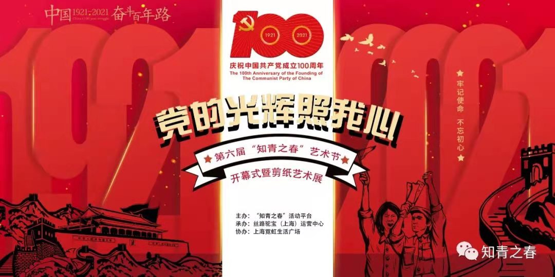2021年,全党全国人民将隆重庆祝中国共产党成立100周年,在这个“两个一百年”的重要节点,由上海“知青之春”活动委员会主办、丝路驼宝(上海)运营中心承办、上海霓虹生活广场协办的《“党的光辉照我心”第六届“知青之春”艺术节剪纸艺术展》,以“百幅剪纸作品,献礼建党百年”! 一、日期:2021年5月9日至14日 二、时间:10点至16点 三、地点:上海霓虹生活广场普安路10号(近金陵中路) 四、交通:地铁8号线大世界站2号口 公交71路黄陂北路站 五、活动安排: 9日10点开始开幕式、文艺演出、展览 10日至14日10点开始展览、讲座(酌情安排) 下午2点至3点文艺演出(酌情安排) 欢迎各位领导、各位朋友、各位剪纸爱好者光临观摩指导,欢迎各文艺团体参加演出。 咨询电话: 曹扬13701992456 钱惠珠18721653134