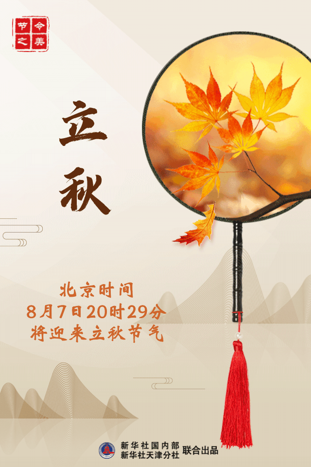 天津民俗专家、专栏作家由国庆介绍,公历每年8月7日至9日,当太阳到达黄经135度时,为立秋之始,它是二十四节气中第十三个节气,也是秋季第一个节气,标志孟秋时节正式开始。