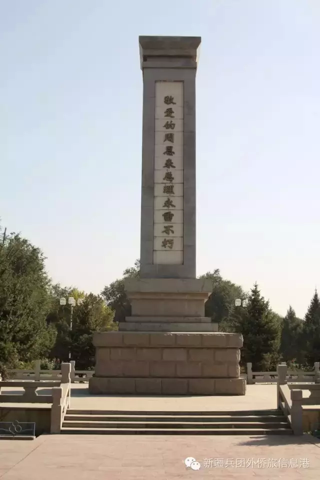 1976年1月8日,周总理与世长辞,为缅怀总理的丰功伟绩,石河子政府决定,在当年周总理接见上海支边青年代表时的地方建起一座纪念碑,将题词镌刻碑上,传之后世,永志不忘。