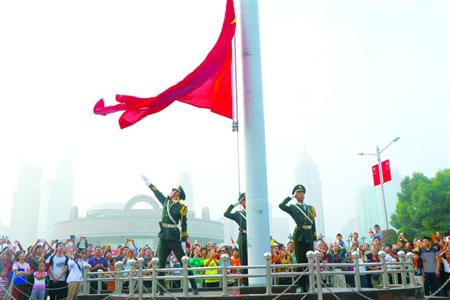 ![]() ◆昨天上午6时30分,武警上海总队一支队国旗班在人民广场举行升旗仪式,百余名群众聚集在人民广场国旗台前观看升旗。 ![]()