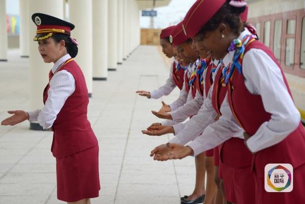 在埃塞俄比亚首都亚的斯亚贝巴拉布车站,中方列车长丁继华(左)指导埃塞俄比亚乘务员练习迎宾礼仪。 “在这条铁路上一切都是崭新的,新的技术,新的知识,这也是我参加应聘这份工作的原因。”贝特鲁告诉记者。丁继华4年前就已退休,经验丰富的他在国内手把手带过许多列车长,而贝特鲁是她的第一个非洲学生。丁继华目前还没有回国的打算。她说:“等把我所知道的全都教给他们后,我就可以回去了。”