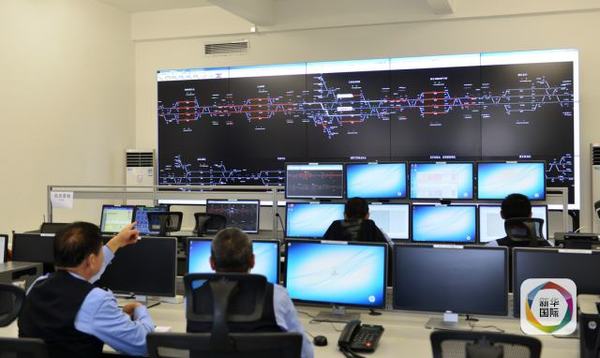 在埃塞俄比亚首都亚的斯亚贝巴拉布车站调度中心,工作人员进行车辆运行测试。