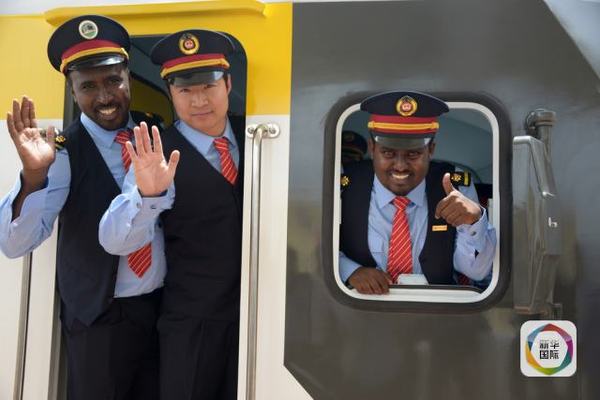 在埃塞俄比亚首都亚的斯亚贝巴拉布车站,中方和埃塞俄比亚列车司机向参观者挥手致意。亚吉铁路由中铁二局和中国铁建中土公司承建,是埃塞俄比亚和吉布提两国境内第一条现代电气化铁路。为了迎接铁路时代的到来,一场大规模的铁道技术培训正在东非高原上展开。参与铁路运营的中铁二局新运公司告诉记者,由于埃塞俄比亚没有现代化铁路,相关专业和人才基本空白。因此,一支1000多人的中国团队将暂时负责铁路的运营,而他们的另一项重要任务就是培养当地的“接班人”。