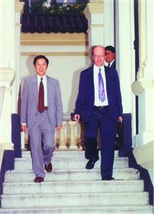 那是陈佐洱人生的高光时刻。 23年前的3月11日,陈佐洱一家三口从北京登机,飞向正成为世界焦点的香港。当时,距离1997年7月1日香港回归,还有3年零4个月。他的使命是,赴港出任中英联合联络小组中方代表,负责磋商香港政权交接的具体事宜。 陈佐洱的伯父陈伯吹和父亲陈汝惠都是知名作家,堂兄陈佳洱曾任北京大学校长,三弟陈佐湟是新中国第一位交响乐指挥博士。 虽然已经过去20多年,但聊起亲历的中英谈判最后1208天,陈佐洱对往事仍历历在目。 突如其来的台湾访客:一句“等你们38年了!”,引来纷纷议论,也改变了陈佐洱的人生轨迹 高渊:你跟港台相关的工作经历,是从什么时候开始的? 陈佐洱:那是1987年9月,当时发生了一件很轰动的事,台湾《自立晚报》派出两个记者取道东京前往大陆采访。这是两岸隔绝38年后,第一次有台湾记者来公开采访。做梦也没想到,协助他们采访的任务会落在我肩上。当时,我刚从福州到中国新闻社总社工作。 高渊:为什么会派你出面接待? 陈佐洱:记得那天是中新社王士谷社长找我谈,有两位台湾记者要来大陆公开采访,中央对此很重视。考虑到台湾《自立晚报》是民间媒体,而中新社也是大陆民间性质的媒体,实行对等接待。《自立晚报》派出的是李永得和徐璐两位记者,李永得是一位部门主任,而我正好是负责对台新闻的部门主任,所以由我作为中新社的代表。 高渊:当时接待有什么必须遵守的原则吗? 陈佐洱:有两条。一是确保自由采访,李、徐想采访谁,到什么地方采访,都要尽量开放和满足;二是确保两人的人身安全。后来我才知道,这是邓小平同志定的。 他们是9月14日15时50分从日本东京登机出发的,途经上海再飞北京。因为机上有重要旅客,所以这个航班在上海多做了一次客货安检,一直到15日零时56分才抵达北京。 我和中新社的同事是当天傍晚就到首都机场等候了,还来了很多国内外媒体。子夜时分,机舱门一打开,李永得和徐璐与我握手,歉意地说:“让你们久等了。”我迎上前说:“欢迎,欢迎,等你们38年了!” 高渊:这句“等你们38年了”,是事先想好的,还是当时脱口而出? 陈佐洱:是脱口而出的,我根本没有细想。因为已经等了4个多小时,加深了焦虑和期待,的确是久等的感觉,飞机晚点嘛。但这话一出口,立刻被世界多家通讯社援引,很多报刊以显著版位报道并加以评论,国内各大媒体在内部也炒得很热。 高渊:听说还引来不少批评? 陈佐洱:当时,中新社在宣武门新华社大楼里办公,中午去食堂吃饭时,就听到有人背后指指点点,“就是这个人说等台湾人等了38年,是什么阶级立场?”中新社里面也在议论,我内心忐忑不安,只想埋头工作,帮两位台湾记者联系好采访。 后来听说,邓小平同志肯定这句话说得好,我悬在半空的心才算放了下来。 高渊:那次台湾媒体的“破冰之旅”,是否客观上也改变了你的人生轨迹? 陈佐洱:台湾记者采访结束后,一下子北京有好几个单位要调我,中央台办要我去负责宣传,当新闻发言人。但我最想去国务院港澳办,因为香港还有10年就要回归了,我工作到退休年龄前还赶得上全过程。1987年底就去了,1988年1月正式上班。几个月后,任命我为副司长。 首次参与的谈判:中英就香港新机场建设问题达成协议,不仅解决了机场之争,更为以后的谈判定下了基调 高渊:第一次参加中英谈判是什么时候? 陈佐洱:是1990年下半年开始的香港新机场建设谈判,一直持续到1991年。 高渊:当时,为何中方反对港英当局的建设方案? 陈佐洱:香港原来的启德机场地处人口稠密的市区,中方在上世纪80年代就建议港英当局择址建设新机场,但对方并不积极,可能不想种了树让后人来乘凉。但到了1989年后,英方处心积虑“光荣撤退”,抛出了一个所谓“玫瑰园计划”,主要就是建设机场和港口。 这个计划最大的问题是,投入过于巨大,可以说是倾尽了香港的财力,留给未来中国特区政府的财政储备只有区区50亿港币。不仅如此,还要不封顶地大规模举债,让特区政府偿还。对此,中央高层的意见很明确,建设香港新机场不能“你请客,我会钞”。 高渊:谈了几轮? 陈佐洱:两轮。地点都在北京,但双方分歧严重,没有谈成。分歧的焦点是,英方坚持认为,就跨越回归的重大事项和中方磋商,会损害英国对香港的有效管治。所以,虽然双方谈判人员都夜以继日地工作,但大原则定不下来,协议依然遥不可及。 英方谈判组长是外交部负责亚洲事务的助理国务次官伯恩斯。他人高马大,一脸营养和修养都很好的样子。他有一次以近乎恳求的口吻跟我说:“后天是我太太的生日,孩子们都会回到伦敦,我们能不能互相让一点,让我回去和他们一起度过这一天。”我当即表示会尽力,但遗憾的是,没能缩小彼此的分歧。 高渊:怎么打破僵局呢? 陈佐洱:到了1991年6月,双方提升了谈判级别。英国派出首相外事顾问柯利达,中方是鲁平,他当时已经是国务院港澳办主任,我作为鲁平的助手参加会谈。 这次,柯利达带来了新方案,同意就跨越1997年的重大事项听取中方意见。这是谈判前提的重要转折,中方当即也作出让步,接受了英方提出的为特区政府留下250亿港币财政储备的建议。 我遵照指示,立即动笔起草协议草稿。值得一提的是,因为中方的坚持,协议名称定为《关于香港新机场建设及有关问题的谅解备忘录》,这“及有关问题”五个字是有深意的。就是说,从今往后,过渡