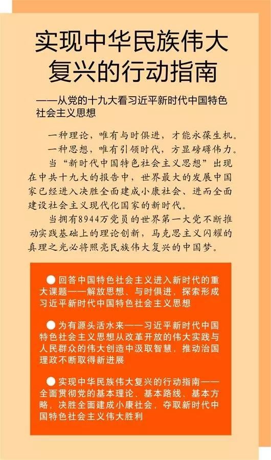▲图表:实现中华民族伟大复兴的行动指南——从党的十九大看习近平新时代中国特色社会主义思想新华社记者周大庆编制