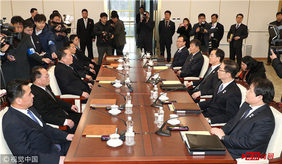▲1月9日,韩朝高级别代表团在板门店韩方一侧“和平之家”举行会谈。