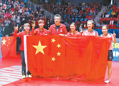 ![]() 5月5日,中国队庆祝夺冠。 当日,在瑞典哈尔姆斯塔德举行的2018年世界乒乓球团体锦标赛女团决赛中,中国队以3∶1战胜日本队,夺得冠军。 (责任编辑:日升) |