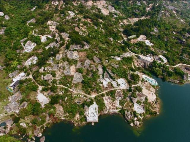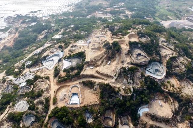 福清市龙田镇南山村海边的山上分布着众多已建成和在建的坟墓。