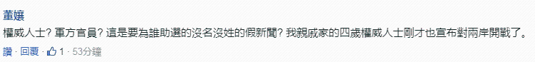 《自由时报》当晚还引述台匿名“军方官员”的话称,“对于共军此次的挑衅行为,我方有全程掌握及因应,在共机靠近中线时,我方就已有在空军机进行拦截示警,共机越界进入中线以东空域时,我方也紧急加派军机升空拦截,防空飞弹阵地接令待命。” 对于《自由时报》通篇引述不明消息来源的报道,该网站上,网民董孃留言道:“权威人士? 军方官员? 这是要为谁助选的没名没姓的假新闻? 我亲戚家的四岁权威人士刚才也宣布两岸开战了。” ![]() 不到一小时后,《联合报》也在网站做了类似报道,其题为“紧张!共军歼11飞越台湾海峡中线 与我军机对峙十分钟”的报道称,台湾海峡上空今天上午一度出现紧张局面:4架大陆空军歼11战机在澎湖西南方飞越海峡中线,与台方战机对峙,时间长达10分钟之久。 ![]() 报道称,消息人士指出,这起事件发生在将近中午时,两批、共4架歼11飞到澎湖群岛西南方“台湾滩”海域的上空,位置超越中线,引起台方战机紧急起飞。但大陆军机并未立刻西返,而在中线偏东空域逗留10分钟。过程中双方并未发生其他不友善动作。 报道还称,“军方将领”透露,近一两周海峡当面大陆军机活动相当密集,目前还没办法确认动机,可能与日前美舰通过台湾海峡有关。 岛内绿媒当天致电台“空军司令部发言人、政战主任”王纯雄求证,王强调这是“国安层级,应由国防部进行说明”,还声称只要有任何军机或是不明飞行器进入台“航空识别区”,台空军一定会派相对应的兵力进行监控与拦截。这种回应引发绿媒不满,炮轰台“国防部发言人机制失能”。 “都是中国的领土,哪有什么狗屁的中线?” 31日,《联合报》网站上,一名网民留言道。有网民呼吁“下一次友善地飞越台北市上空吧” ,有人预测“有些人不见棺材不掉泪,以后这种事会是常态,然后。。。。。。”还有人讥讽台“国防部”,称“国防部不管如何都是‘一切尽在掌控中’的回答呀!”另一名网友回应道:“掌控共机进入海峡中线10分钟”。 ![]() ![]() ![]() ![]() ![]() 台媒上次报道解放军军机越过“海峡中线”还是在去年五月。在去年“5?20”前夕,台湾“中时电子报”报道称,一架疑为解放军运8型运输机5月17日上午10时贴着“海峡中线”飞行。前台军飞行教官于皓玮当时对台媒称,运8于14日首度被发现在“海峡中线”执行任务时,就有部分航迹越过“海峡中线”,17日的航迹同样也越过“海峡中线”,显示台空军两次都未能即时逼退运8。 对解放军空军演训及军机绕岛飞行,国台办曾表示,这传达的信息是十分清晰和明确的,就是针对“台独”分裂势力及其活动所做出的强烈警告,展现了我们维护国家主权和领土完整的决心和能力。我们有坚定的意志、充分的信心和足够的能力,维护国家主权和领土完整,遏制任何形式的“台独”分裂活动。“台独”是没有任何出路的。 (责编:日升) (责任编辑:日升) |