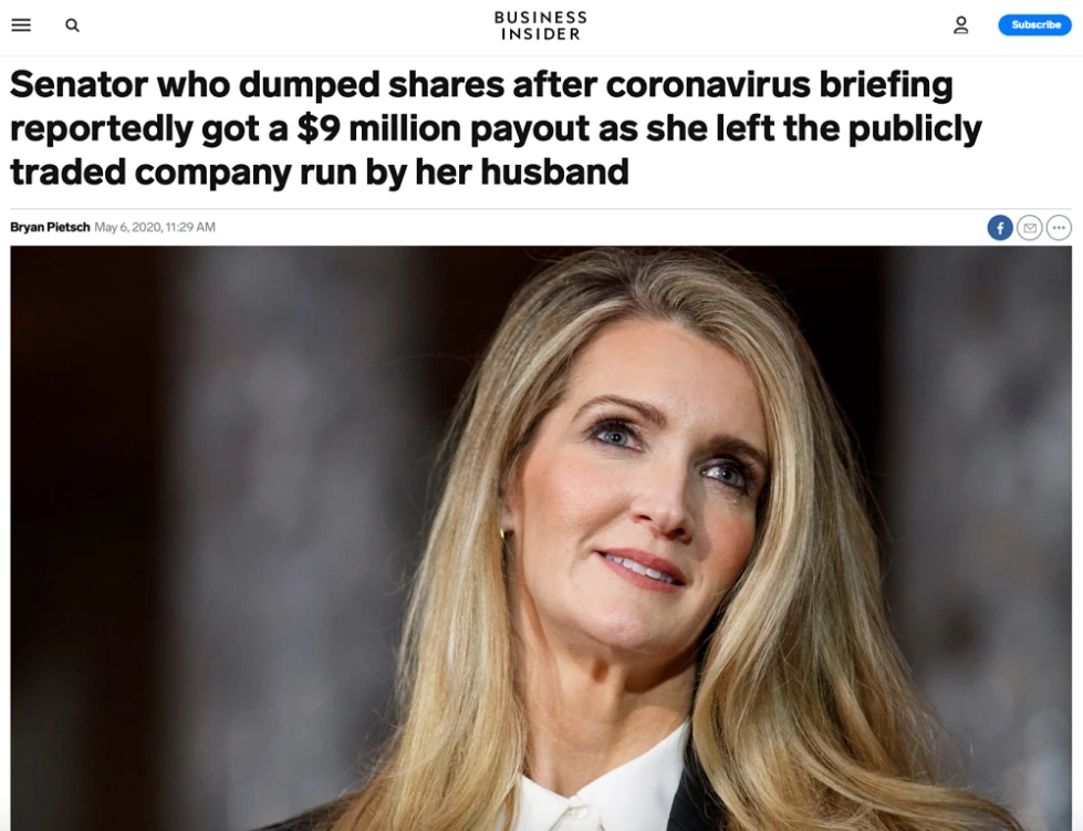 疫情期间,美国政客的丑闻不断。先是美国参议院情报委员会主席理查德·伯尔被指控利用疫情简报在股市暴跌前出售了近200万美元的股票,接着在5月6日,美国媒体再次曝光伯尔的连襟杰拉德·福斯,在同一天也抛售了价值9万至28万美元的股票。随着调查的深入,媒体发现至少有4名参议员在股市大跌前抛售大量股票。这其中,就包括了因身价过亿被称为史上最富参议员的凯利·洛夫勒。