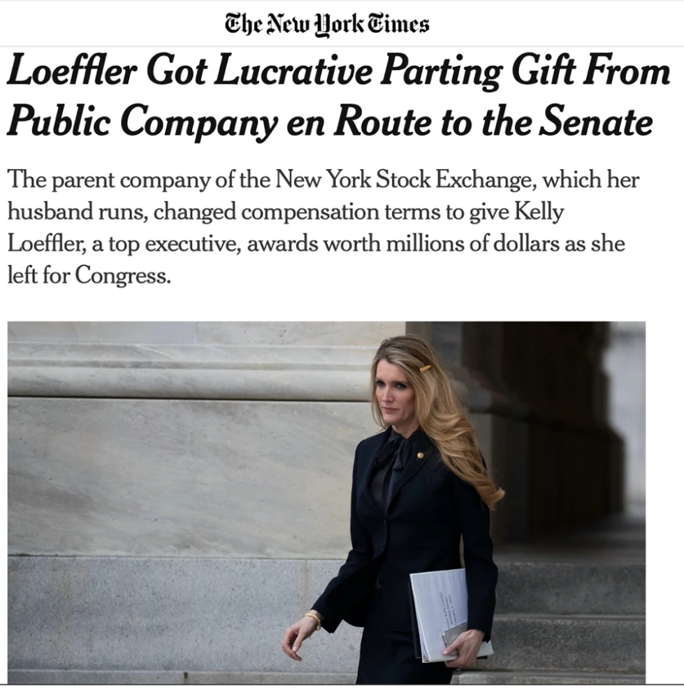 △《商业内幕》报道,参议员凯利·洛夫勒涉嫌股票内幕交易,从交易所离职同时获巨额薪酬