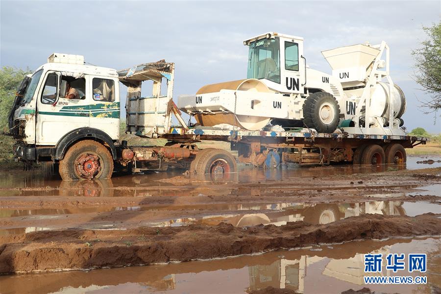 2018年7月22日,中国赴苏丹维和工兵分队车辆在苏丹达尔富尔地区行军。 新华社发