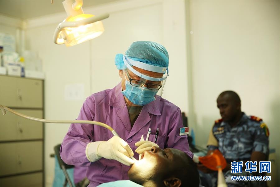 2016年6月15日,中国维和医疗队员在马里加奥的联合国马里稳定团中国二级医院为患者治疗。 新华社发(赵子权摄)