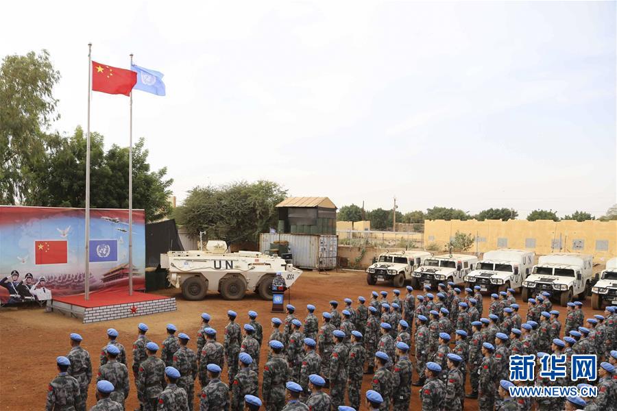 2016年1月1日,中国第三批赴马里维和部队在马里加奥举行升旗仪式。 新华社发(韩立建摄)