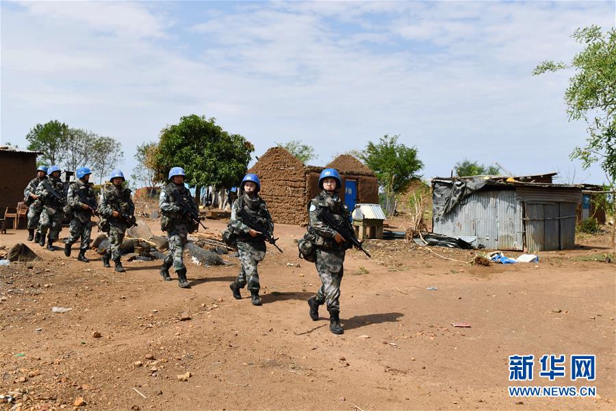 2019年9月11日,中国维和战士在南苏丹首都朱巴执行巡逻任务。 新华社发(姜东坡 摄)
