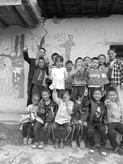 熊洞(后排左一)杨李秀(后排右一)和孩子们在一起