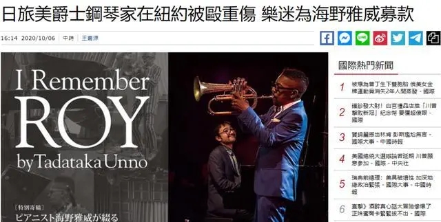 据多家日本媒体报道,日本爵士钢琴家海野雅威(Tadataka Unno,40岁)前不久在美国纽约的一处地铁站内遭人毒打,身受重伤。 有日本媒体还称,他的遇袭与种族主义有关,当时他可能是被施暴者误当成了“中国人”。 据日本共同社的报道,海野雅威是在当地时间9月27日晚间遭到袭击的。 ![]()