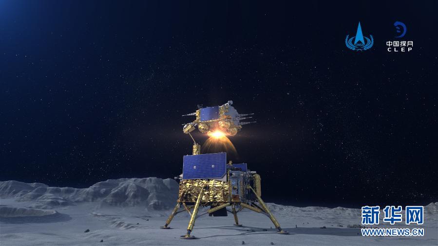 这是嫦娥五号上升器月面点火瞬间模拟图。新华社发(国家航天局供图)