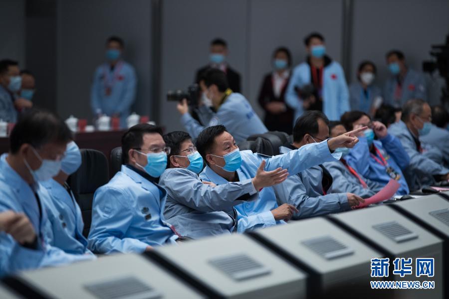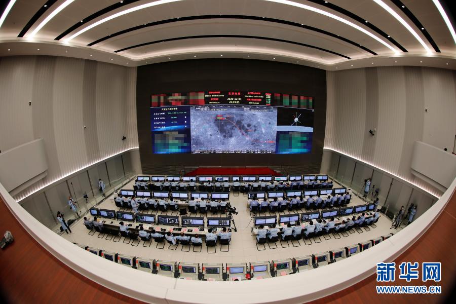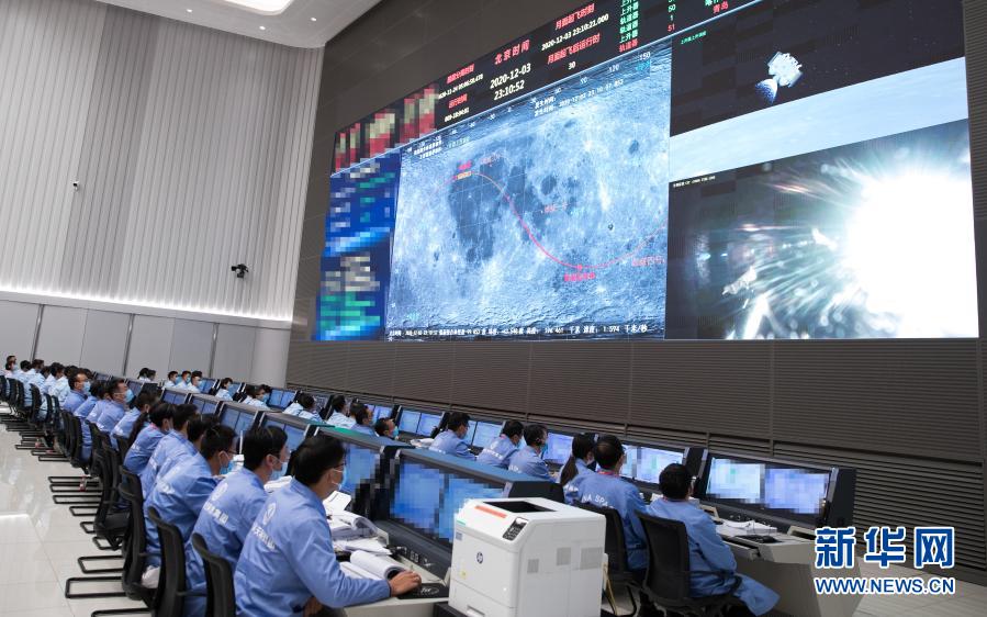这是12月3日,在北京航天飞行控制中心拍摄的嫦娥五号上升器飞行过程。新华社记者 金立旺 摄