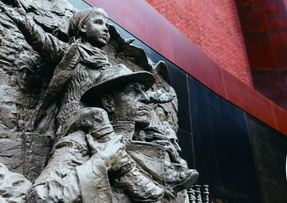 ![]() 犹太难民纪念馆广场上竖立着上海犹太难民名单墙,这是名单墙上的群雕。 本报记者 张 挺摄 ![]()