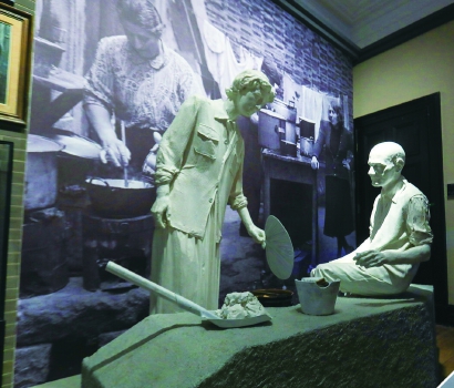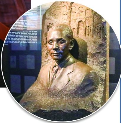 ◆展厅内,被以色列政府追授为“国际义人”的何凤山的铜像。 本报记者 叶辰亮摄