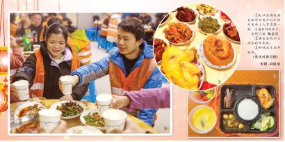 ①虹口区瑞虹商业体项目留沪过年的外来务工人员团聚一起,过着别样的除夕。 本报记者 陈龙 摄 ②瑞金医院护士沈虹的年夜饭。 ③钟鸣医生的年夜饭。 (采访对象供图) 制图:冯晓瑜