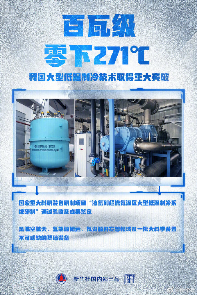 原标题:权威快报丨零下271℃、百瓦级 我国大型低温制冷技术取得重大突破