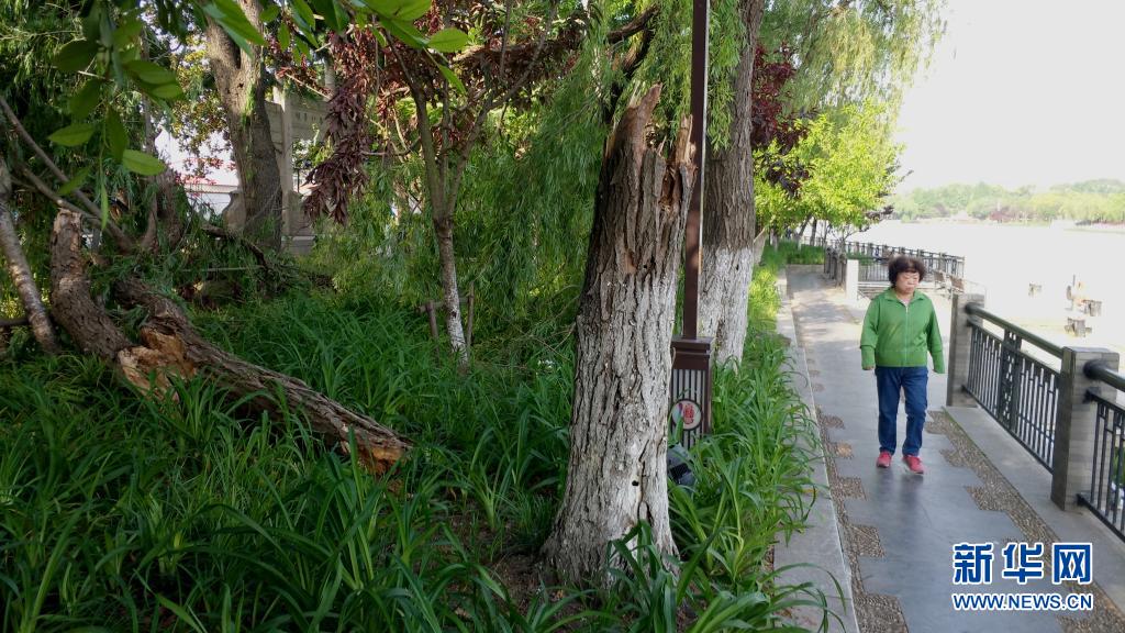 5月1日,南通市民经过倾倒的树木。新华社发(宋诚林 摄)