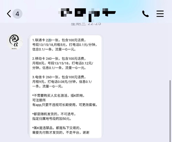![]() 当前我国打击治理电信网络诈骗等涉网犯罪形势依然严峻,其中涉“两卡”(电话卡、银行卡)违法犯罪治理难度大是重要原因之一。工信部日前发布消息称,将强化电话卡、物联网卡等重点业务风险整治,推进“断卡行动”,加大力度整治电信网络诈骗。 新华社记者调查发现,当前非法开办、买卖“两卡”在线上线下均仍多见,且已形成黑产业链。公安机关提醒广大群众,售卖“两卡”,涉嫌帮助信息网络犯罪活动罪,行为人将受到法律惩处,个人征信也将受到影响。 QQ平台上仍存涉“两卡”违法犯罪 经不住朋友“阿毛”劝自己“赚点零花钱”,广西某高校大学生农某以每张300元的价格,将自己实名办理的银行卡卖给了“阿毛”,并为其办理了U盾和手机号码。之后,农某因涉嫌帮助信息网络犯罪活动,被广西天等县警方取保候审。 广西宾阳县公安局经侦大队大队长黄宁介绍,当前警方花费大量精力追踪到的涉案电话卡或银行卡的开卡者往往不是使用者。犯罪团伙往往利用他人的实名电话卡进行诈骗等犯罪,再利用他人的实名银行卡、资金账户来转移赃款,成为网络诈骗、网络贩毒、网络赌博等违法犯罪行为断根难的重要原因。 记者了解到,在各地重拳打击之下,非法获取“两卡”难度加大,但漏洞仍然存在。个人银行卡“四件套”(包括银行卡、身份证复印件、网银U盾和手机卡)和企业对公账户“八件套”(包括对公银行卡、U盾、法人身份证、公司营业执照、对公账户、公章、法人私章、对公开户许可证)仍存大量违法交易且价格“水涨船高”。 一些地方,“四件套”价格从去年初的两三千元涨至上万元,“八件套”从约4000元涨至两三万元。 记者调查发现,一些网购平台、贴吧、社交软件上依然有人在非法贩卖“两卡”。记者搜索“买银行卡、手机卡”或“八件套”,跳出不少交易引导页面,页面留有QQ号码,并标注:“欢迎一手卡头对接,长期收货。”记者随机添加了一个销售电话卡的QQ号,此人QQ备注信息显示:“特殊业务不方便过多介绍,请简单交易。” 说明目的后,对方发来一张“价目表”,三大运营商电话卡每张收费220元至260元不等,包含100元话费,并特别标注“不需要购买人实名激活,插卡即用,可注册所有App,只要不违规可长期使用,随机发货。黑卡属于违禁品,都是私下交易,需要先付款才发货,不走平台”。 ![]()