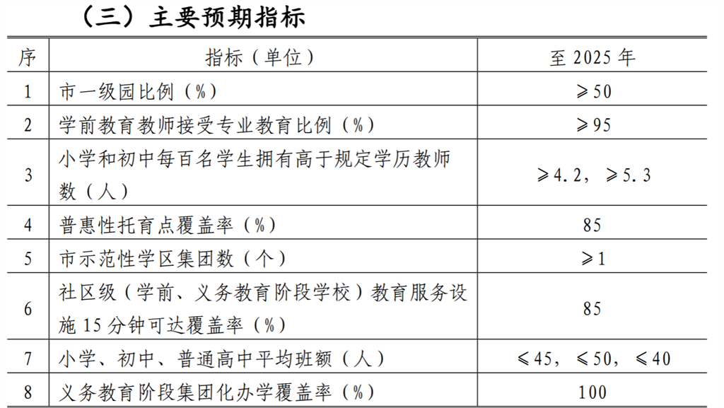 教育发展“十四五”规划主要预期指标 截图来自临港新片区管委会官网