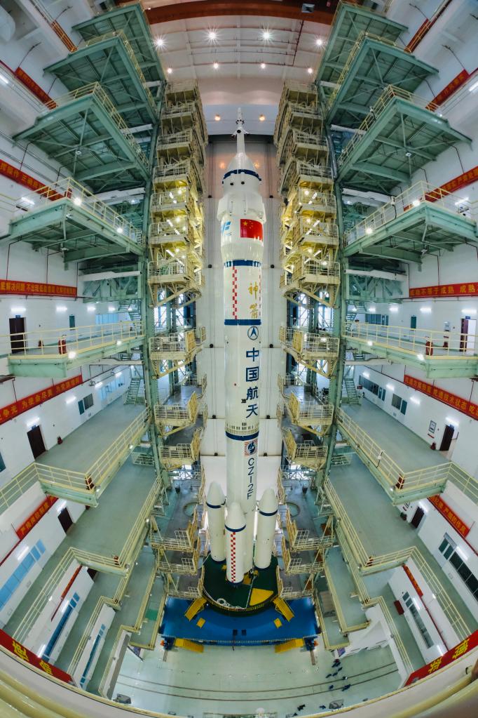 此次执行神舟十二号载人飞船发射任务的长征二F运载火箭。摄影:高楠