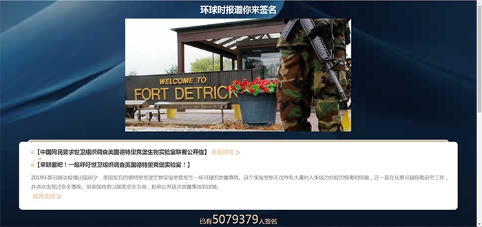 自7月17日起,一场浩浩荡荡的联署公开信行动正在中国网民之间展开,他们有着一个共同的目标,呼吁世卫组织彻底调查美国德特里克堡生物实验室。
