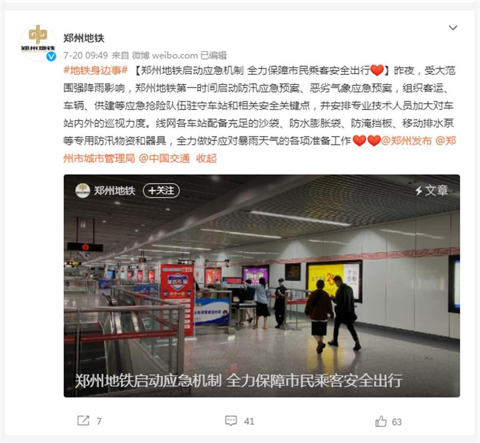 7月20日,郑州遭遇特大暴雨侵袭,地铁5号线一辆列车迫停隧道内,数百名乘客被困两个半小时,官方通报称地铁内共造成12人死亡。 在此期间,郑州地铁集团采取了什么应急救援措施?地铁停运的决定为何姗姗来迟?一系列的谜团至今仍有待解开。而交通运输部则发布紧急通知,要求运营单位要求汲取郑州地铁教训,不具备安全运行条件的坚决停运。 ![]() “第一次离死亡这么近” “刚坐上地铁时,以为噩梦结束了。”网友“奇迹奇缘”在微博自述中说。 “奇迹奇缘”是7月20日下午郑州地铁5号线上数百名乘客中的一员。当时,在暴雨肆掠的城市里,各种交通工具瘫痪,许多人把地铁当作回家的最后希望,顶着大雨、蹚着洪水走进地铁站。 下午6时01分许,当列车行驶至海滩寺站与沙口路站之间时,突然停下。乘客们惊恐地发现,地铁轨道上的积水越来越深,车厢里也开始进水,不一会水就到腰部了。车外的水一直在涨,看起来像是一条奔腾的河流,而且比车厢内的水位更高。“奇迹奇缘”这时意识到,噩梦才真正开始。 陈先生也是列车内的一名乘客,他上车时车厢里人很多,位置已经坐满,还有人站着。“快到沙口路站时,地铁隧道进水了,积水渐渐漫过轨道,没法再行驶。当时司机想把地铁往后面退,但没成功。”他回忆说。 列车刚停下后,有乘客变得焦躁,大声呼喊,还有人要去拉紧急开关开车门。列车停靠20分钟后,有工作人员从隧道中走过来,打开了地铁车厢的两个门,一些乘客走出车厢,想沿着轨道边向前走上站台。 晚上7时多,陈先生蹚水走出沙口路站。和他同时脱险的,还有数百名乘客,但另外300多名乘客试图离开时发现水流变得太急,最终留在了车厢内等待救援。 ![]() 此后,车厢内积水越来越深,已达到乘客胸部,车厢内空气越来越稀薄,有乘客出现晕厥的情况…… 晚8时30分许,消防救援队员赶到现场。“奇迹奇缘”和其他乘客陆续被救了出去,“第一次离死亡这么近,很幸运的是我活下来了。”她说。 7月21日凌晨零时48分,郑州消防的官方微博对外通告了救援情况,截至当时共疏散群众三百余人。 7月22日,郑州地铁官方微博发布通告称,7月20日,郑州市突降罕见特大暴雨,造成地铁5号线五龙口停车场及其周边区域发生严重积水现象。18时许,积水冲垮出入场线挡水墙进入正线区间,造成郑州地铁5号线一列车在沙口路站至海滩寺站区间内迫停,500余名乘客被困。在地铁员工、应急救援队、公安干警、解放军指战员、义务救援队及热心乘客的共同努力下,共解救乘客500余名,12名乘客经抢救无效不幸罹难,5名乘客送院观察,生命体征稳定。 ![]() 姗姗来迟的地铁停运公告 极目新闻记者梳理发现,7月20日当天,郑州地铁官方微博从早到晚多次发布各种通告,但下午6时42分,才宣布地铁全线停运。 7月20日上午8时5分,针对网友提出的“雨好大,地铁还好么?”的问题,郑州地铁的官方微博回应称,“风里雨里,地铁等你”。 上午8时48分,郑州地铁微博发布通告称,“因降雨影响,京广南路B口临时关闭,请大家相互转告哦。”8分钟后,地铁微博再次通告:“出入口开启啦,请各位小伙伴互相转告哦。” 上午9时49分,郑州地铁微博发布通告:“昨夜,受大范围强降雨影响,郑州地铁第一时间启动防汛应急预案、恶劣气象应急预案,组织客运、车辆、供建等应急抢险队伍驻守车站和相关安全关键点,并安排专业技术人员加大对车站内外的巡视力度。线网各车站配备充足的沙袋、防水膨胀袋、防淹挡板、移动排水泵等专用防汛物资和器具,全力做好应对暴雨天气的各项准备工作”。 下午3时40分,郑州地铁微博发布通告:“受降雨影响,毛庄站A、D出入口临时关闭,请大家相互转告哦”。 此后的17分钟内,郑州地铁微博连续发布了6条多个站点出入口临时关闭的通告。 下午4时30分,郑州地铁微博发布通告称,受强降雨影响,郑州地铁1号线、2号线行车线路进行调整,部分车站暂停运营,部分车站的电扶梯、出入口采取了临时关闭。 下午4时至5时,一个小时内,郑州的降雨量达到了201.9毫米,单小时降雨量超过日历史极值,降雨强度历史罕见。从下午4时30分至5时58分,郑州地铁微博接连发布了12条关于站点暂停运营的信息。 下午6时42分,郑州地铁微博发布通告称,受持续暴雨影响,郑州地铁全线网车站已暂停运营服务,不便之处,敬请谅解。目前郑州地区暴雨红色预警中,请广大市民注意出行安全。 此时,距离5号线列车被困已经过去了40余分钟,5号线早已处于事实停运的状态。 两个半小时内做了什么? 从下午6时1分列车停下,至晚8时30分许消防救援人员赶到现场展开营救,在长达两个半小时的时间里,多位乘客通过网络发布了求助信息,其中就有河南交通广播的女主持人小佩。 从乘客们发布的现场视频中,无数网友看到了列车内数百名乘客面临的极端危险处境,所有人都揪心不已。 媒体报道和多名乘客事后的讲述显示,在两个多小时的时间里,列车长曾通过打开紧急出口疏散了部分乘客,现场的地铁工作人员也曾积极帮助乘客们脱险。但除此之外,被困的乘客们并未获得来自地铁公司的其他帮助。 在全国网友都看到数百名乘客被困在列车内、处境极端危险的情况下,郑州地铁集团什么时候收到相关信息?收到信息后采取了什么应对措施?成为了网友们最关心的问题。 7月22日,极目新闻记者致电郑州地铁客服热线欲了解此事,一