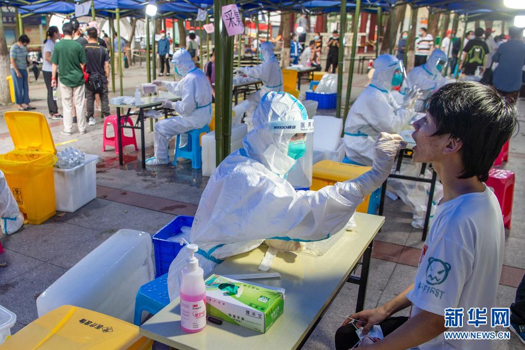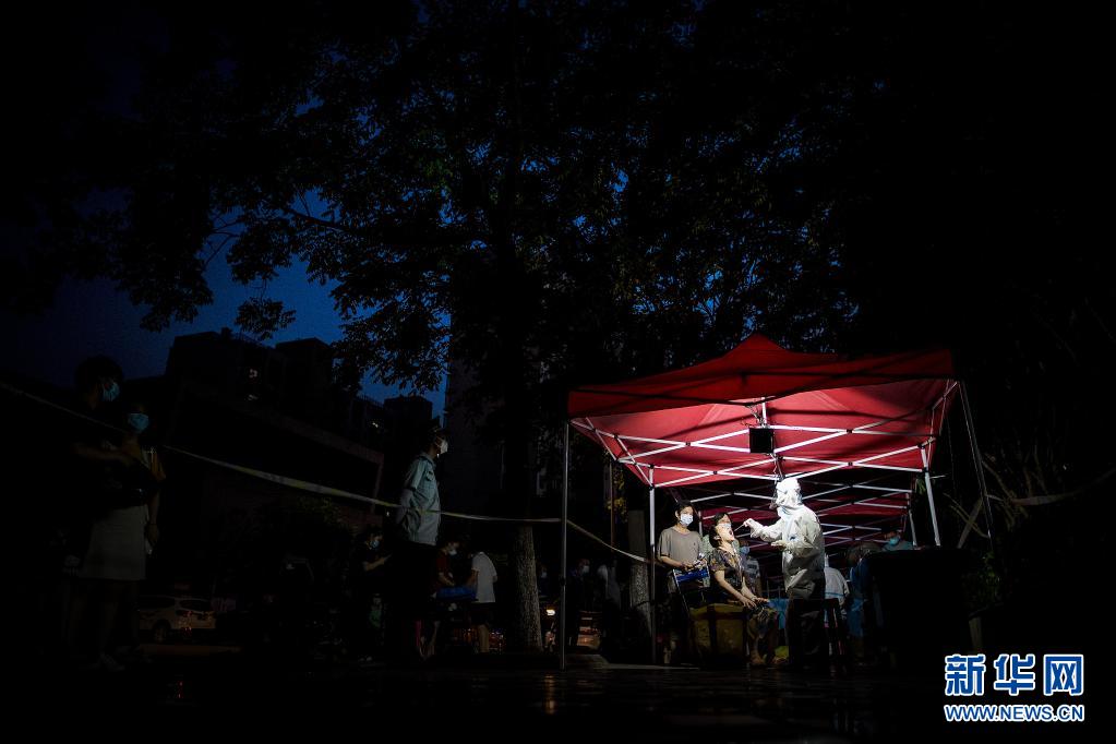 高温下,如何与病毒竞速? 不舍昼夜、争分夺秒。 宣布启动全员核酸检测以来,慢不得、坐不住的责任感、紧迫感迅速在武汉市上下传递开来。 时值盛夏酷暑,广大一线工作者闻令而动,再次走上战“疫”一线:2.8万余名医护人员紧急集结,化身“大白”持续奋战;1.3万余名社区工作者不分昼夜、冲锋在前;4万余名党员干部和2.7万余名公安民警下沉一线、坚守社区;11万余名志愿者热心服务、无私奉献。 1100多万武汉市民更是临危不乱,全力支持和配合检测工作。“市民群众搬冰块,医护人员享清凉”,成为英雄城市的一道靓丽风景…… “我们多守一会儿不要紧,早点完成采样,大家早点安心。”8月3日晚11时许,武汉市汉阳区龙阳社区卫生服务中心核酸采样点灯火通明,采样点负责人王书刚告诉记者,下午2时开放采样点以来,80多位医护人员编成3组,3小时一轮换,9小时不停歇已采集核酸7000多份。 这样的坚守,发生在武汉全市2800多个核酸采样点。 除了合理布局采样点位安排居民进行核酸采样,武汉市还抽调医护人员组成“扫楼小分队”,登门入户查缺补漏。 采样是前提,检测是关键。记者6日在武汉市第一医院看到,27名核酸检测员,3个人一组、6个小时一班,24小时不停歇地进行实验室检测工作。医院相关负责人介绍,经历去年疫情大考,检测能力已有大幅提升。 据了解,为确保每位居民核酸检测结果及时、准确出具,武汉全市180多家医疗机构参与采样,104家各类检测机构马力全开。 ![]()