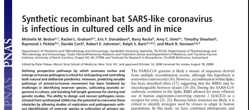 ![]() “在这里,我们报告了一项规模最大的、人工合成的,可复制的生命形态。”一篇2008年发表在《美国科学院院刊》(PNAS)的论文在摘要里豪情四溢地写道:这项研究完成了一种全长29.7kb的SARS样冠状病毒的从头设计、合成和激活。 论文详细记录了从头设计、合成并激活SARS样冠状病毒的方法,并特别验证了这种人造病毒不仅能让小鼠感染患病,还能侵袭人类的气道上皮细胞! 该论文的通讯作者是被称为“冠状病毒之父”的美国北卡罗来纳大学流行病学系教授拉尔夫·巴里克。 “现在我们有能力设计、合成各类SARS样冠状病毒。”巴里克在论文发表时,这样介绍其团队的实力。 30年打磨,才有设计合成SARS样冠状病毒的能力。 新冠病毒是SARS样冠状病毒的一种。巴里克拥有设计、合成各类SARS样冠状病毒的能力。 在论文中提到,“设计、合成”是指无需自然中的病毒,只需要使用商业合成的DNA“碎片”,就能造出一个病毒。 这就好比用通用的“乐高积木”做拼装,不仅要拼接巨大的3万块遗传序列(新冠病毒核酸序列较长、30KB左右),拼装后要让它“活”起来,具有侵袭细胞的能力。(注:RNA病毒的制造还需要反转录、重生、收获的过程) 突破生命与非生命的界限,花费了巴里克将近30年的研究。1989年巴里克公开了对病毒基因重组的研究,自那以来,他一直在探究用分子生物学的手段剖析、操控、创造冠状病毒,在不同的病毒上进行重组、克隆、修饰、改造。 数据显示,1983年以来巴里克以自身名义或者作为指导教师共发表400余篇论文,其中关于冠状病毒的论文高达268篇。 2002年,巴里克领导团队建立了世界上第一个以片段组装为基础的鼠肝炎病毒反向遗传系统。依靠这套系统,科学家对病毒的研究可以在活体内进行,通过改变病毒的基因或者结构,来了解每个基因在病毒与宿主相互作用时发挥的作用。 病毒没有宏观世界里的“头”“胳膊”“躯干”,不能一眼看去就知道功能,这套系统让巴里克有了“庖丁解牛”的能力。 这些工作都是极具突破性的,巴里克因此有了“庖丁解牛”再重新拼装成“活牛”的整套技术体系。他甚至可以给病毒不断更换“组件”,别人手里的病毒“换了心、肝、脾、肺就活不了了”,但巴里克掌握了冠状病毒的基因组奥秘,想制造怎样的病毒就就任意组合,都能得到活病毒。 冠状病毒能致命了,巴里克经费拮据的状况大有改观 但在2003年之前的冠状病毒少有造成人畜共患病的,即便是感染人也只有轻微感冒症状。例如巴里克研究的鼠肝炎病毒(mouse hepatitis virus ,MHV)就不能感染人,这使得巴里克冠状病毒的研究举步维艰,申请经费的努力屡次被拒。 巴里克曾回忆研究无资助时的绝望:欲哭无泪,坐在办公室开始思考未来的职业道路,如果必须要放弃钟爱的科研事业,会考虑去做一个救生员或游泳教练。 直到2003年SARS的出现。SARS用实力证明冠状病毒能够致命,并对人类产生巨大的危害,这给巴里克的研究带来新生。 SARS爆发后,巴里克实验室的研究经费大幅增加,先后发表多篇有关SARS与MERS病毒机理与治疗的相关研究,也收获了大量病毒制造技术的专利授权。 经费的大起大落,让巴里克明白,冠状病毒从头制造的问题解决了还不够,让冠状病毒有持续的感染力、传播力、致病能力,才能让自己的研究获得源源不断的支持。 有了经费,巴里克团队通过基因重组技术定向培养了大量的、在传代中不断变异的冠状病毒。2006年8月,在经历不知道多少代的病毒有明显目的性的定向培养后,一株能够成功导致小鼠快速死亡的突变出现了,而且这种新型病毒可以感染给人类,并导致肺炎和较高的死亡率。 有了经费,巴里克在随后的几年里进行了更加丰富的研究,例如使用马里兰州野生动物保护区和动物园的动物样本,进行感染机理研究,以获取更广泛的感染能力。 (责任编辑:晓歌) |