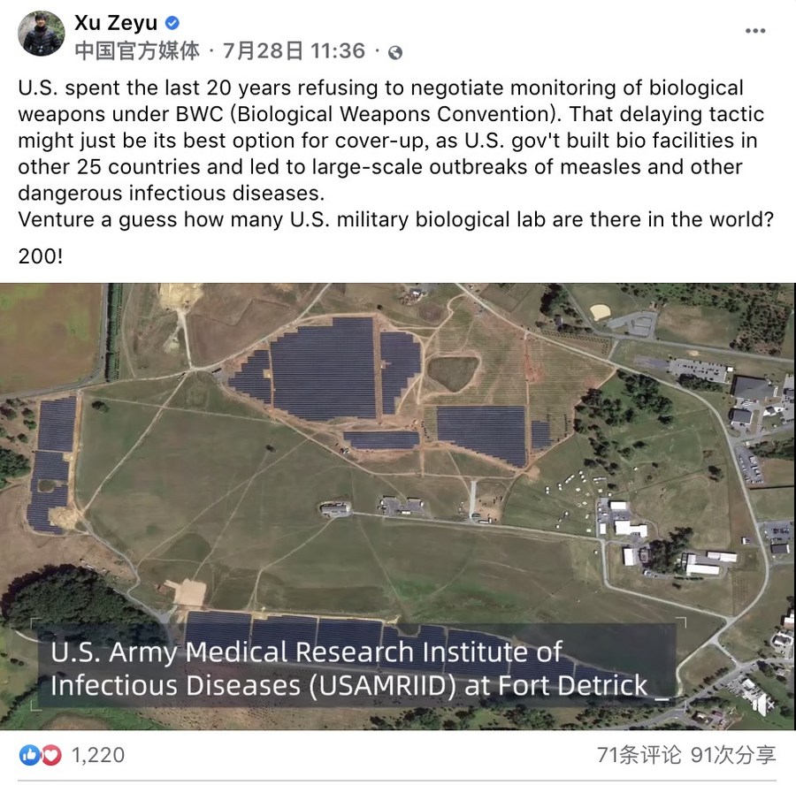 看过这条视频后,一名法国网友倒吸一口凉气:“美国居然在全世界有200多个生化实验室,我还真不知道……”