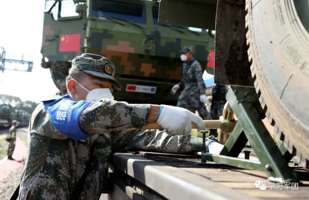 参加“和平使命-2021”联合军演的中方参演部队正在进行铁运装载(仲崇岭 摄)