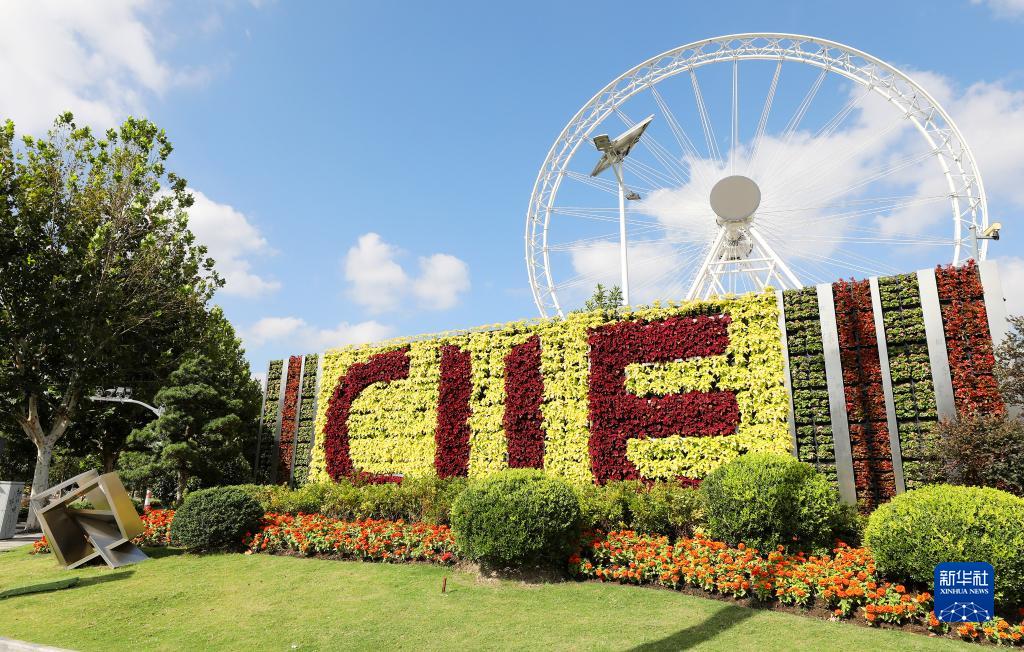 这是国家会展中心(上海)周边的进博会主题绿化装饰(10月5日摄)。新华社记者 方喆 摄