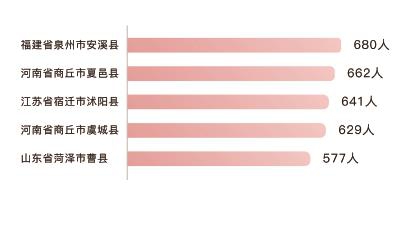 “新新农人”数量TOP 5县城 在全国“新新农人”数量TOP 5县城中,福建省安溪县超过680人,排名全国第一。