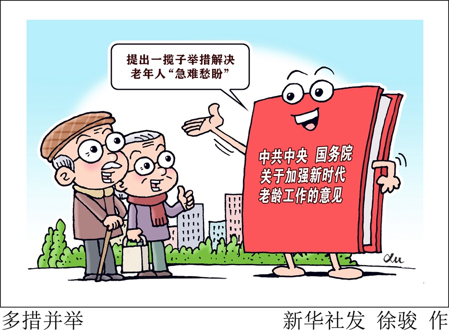 近日发布的《中共中央 国务院关于加强新时代老龄工作的意见》从健全养老服务体系、完善老年人健康支撑体系、促进老年人社会参与等多个方面提出一揽子举措。养老难题怎么解决?健康养老靠什么支撑?老年人不会上网怎么办?在9日举行的国新办发布会上,有关部门围绕意见精神和具体落实举措作出回应。
